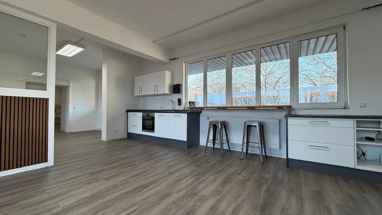 Diese vielseitig nutzbare Gewerbeeinheit wurde bislang als Büro und Fotostudio genutzt und bietet ideale Voraussetzungen für Unternehmen, die Wert auf Raumqualität, Funktionalität und Außenanbindung legen.