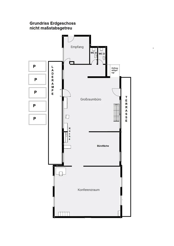 Darüber hinaus steht eine Laderampe zur Verfügung, die eine komfortable Anlieferung und Logistik ermöglicht und die Fläche insbesondere für Unternehmen mit Warenverkehr deutlich aufwertet.