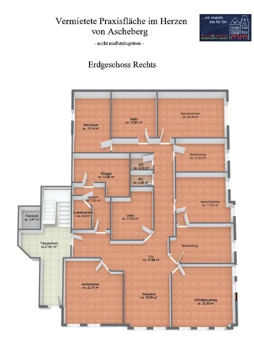 - 12 Zimmer/ Behandlungsräume/ Rezeption/ Wartezimmer/ Labor/ etc.