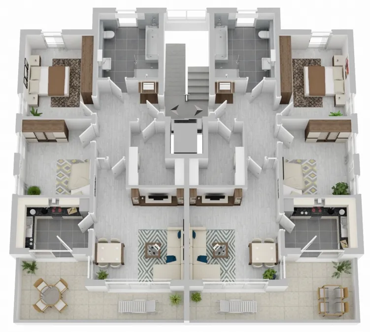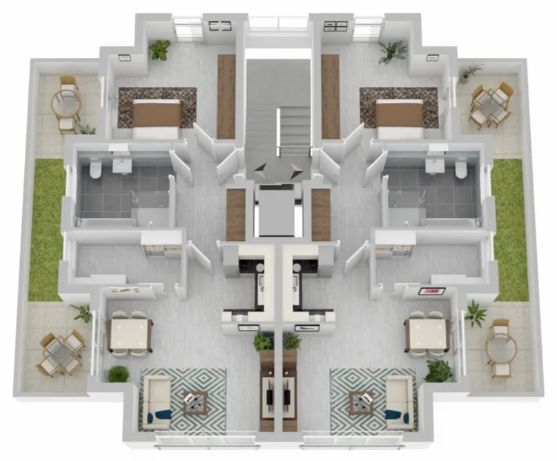 Jede der Einheiten bietet großzügigen Wohnkomfort mit zahlreichen Annehmlichkeiten.