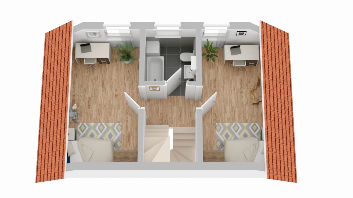Hier erwarten Sie zwei gut geschnittene Schlafzimmer. Das Tageslichtbad sorgt auch auf dieser Etage für eine helle und freundliche Atmosphäre.