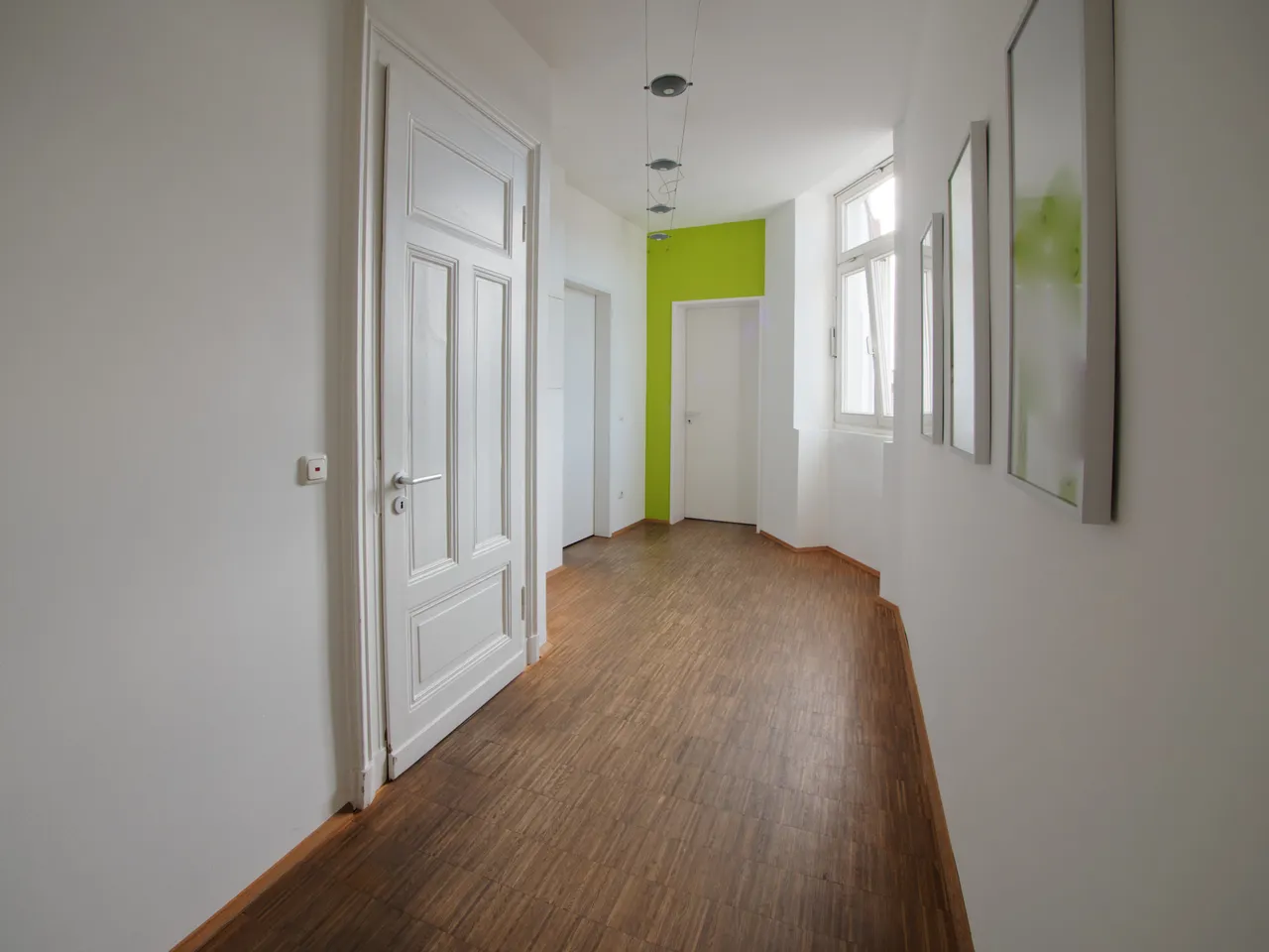 Die Fläche ist über zwei separate Zugänge vom Treppenhaus aus erschlossen, was zusätzliche Flexibilität für verschiedene Nutzungskonzepte oder eine interne Flächenteilung bietet.
