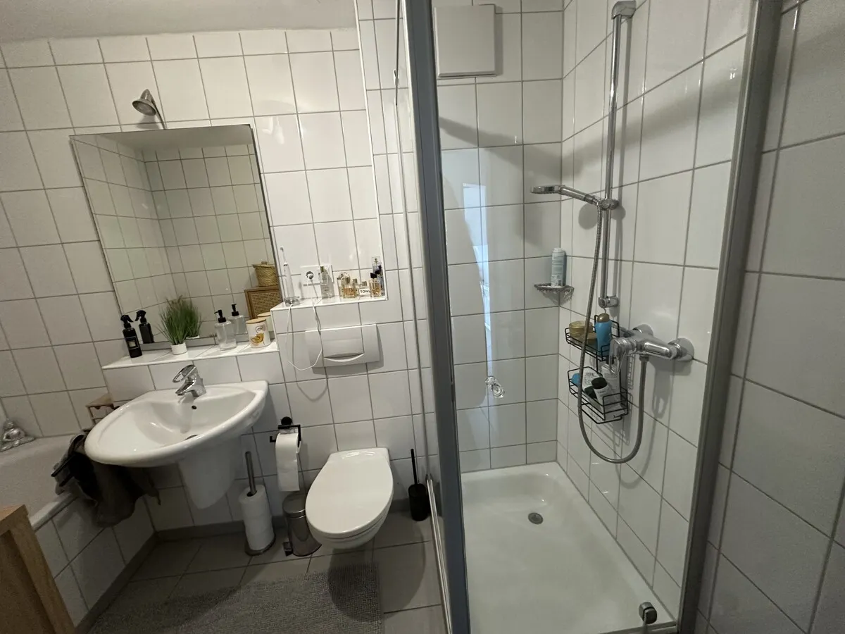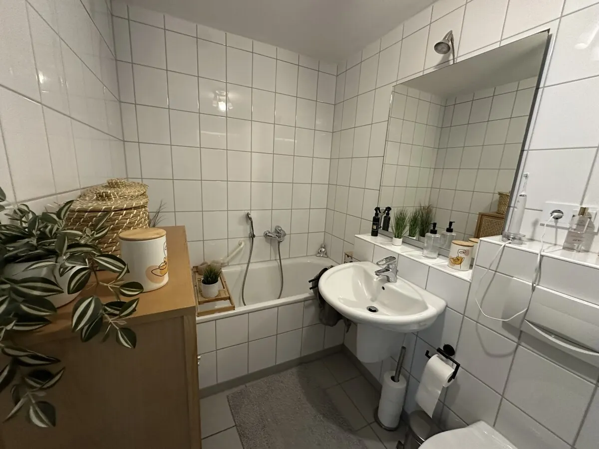 Im 1. Obergeschoss eines modernen Mehrfamilienhauses befindet sich diese großzügige 2-Zimmer Wohnung. Einkaufsmöglichkeiten befinden sich in direkter Nähe und sind fußläufig zu erreichen. Die Wohnung ist aufgeteilt in Wohn-/Esszimmer mit Zugang zum Balkon, Küche (monatlich 35,00 €), Schlafzimmer, Bad mit Wanne und WC. Genug Stauraum bietet Ihr zusätzlicher eigener Kellerraum. Im Keller befindet sich ein Waschraum, hier besteht die Möglichkeit Waschmaschine und Trockner unterzubringen. Das Auto stellen Sie auf Ihrem eigenem Stellplatz (monatlich 20,00 €) ab.