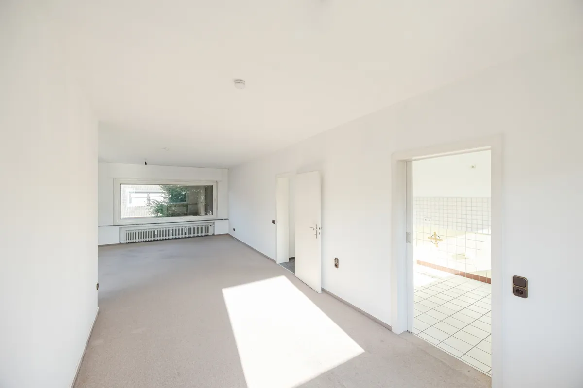 Sie haben die Wahl: Das bestehende Haus kann saniert und als großzügiges Einfamilienhaus oder komfortables Mehrgenerationenhaus genutzt werden. Das Dachgeschoss ist nicht ausgebaut. Die Grundrisse eignen sich hervorragend für beide Varianten, und das weitläufige Grundstück bietet ausreichend Platz für eine große Gartenfläche. Ebenso besteht die Möglichkeit, das vordere Haus zu modernisieren und das Grundstück zu teilen. Auf dem hinteren Teil könnte ein Neubau entstehen, der selbst genutzt, vermietet oder verkauft werden kann. Nach den Vorgaben des Bebauungsplans ist hier sogar die Errichtung eines Doppelhauses denkbar. Wer noch größere Pläne verfolgt, kann den Bestand auch vollständig abreißen und das Grundstück gemäß den vielfältigen Festsetzungen des B-Plans neu entwickeln.