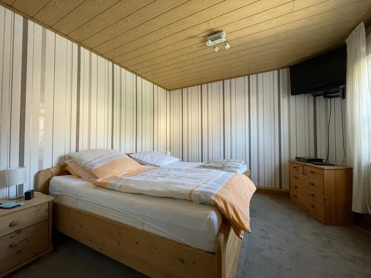 Im Obergeschoss befinden sich zwei Schlafzimmer sowie ein renoviertes Badezimmer mit moderner Ausstattung. Der Spitzboden ist wohnlich nutzbar und eignet sich ideal als Arbeits-, Gäste- oder Hobbyraum.