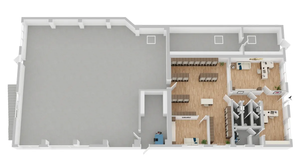 Die Büroflächen befinden sich in einem einfachen Zustand und bieten Potenzial zur individuellen Modernisierung.