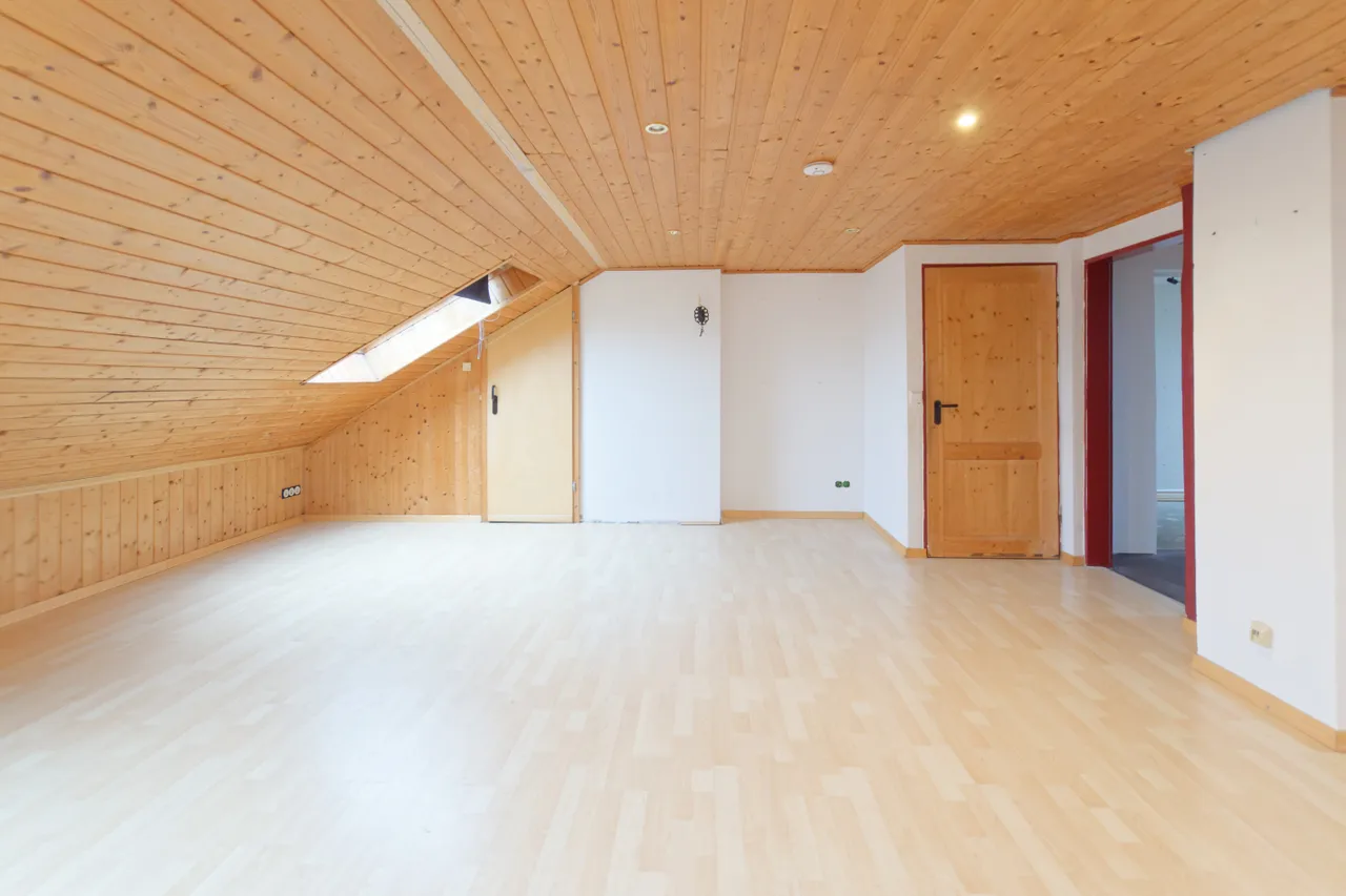 Das ausgebaute Dachgeschoss begeistert mit einem großen Wohnzimmer, zwei kleineren Zimmern, einem in Jahr 2019 sanierten Tageslichtbad mit Dusche sowie einem kleinen Heizungsraum. Ob als Gästeetage oder Rückzugsort für Jugendliche – hier sind der Fantasie keine Grenzen gesetzt. Im Dachgeschoss wurden ca. 17 m² Wohnfläche genehmigt, wobei tatsächlich ca. 40 m² Fläche zu Wohnraum ausgebaut wurde. Ein zusätzlicher Spitzboden bietet weiteren Stauraum.