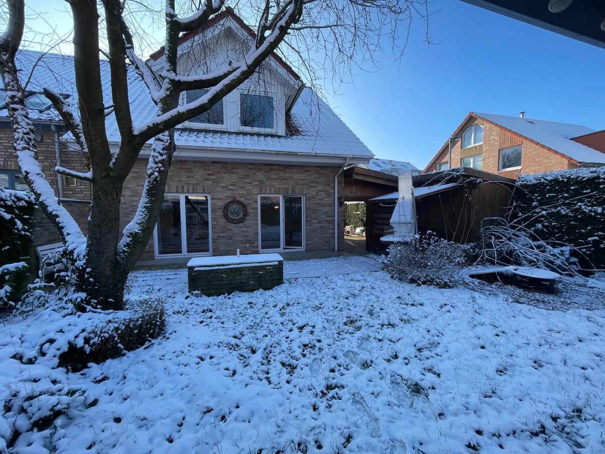Zusätzliche Nutzfläche bietet der wohnlich ausgebaute Spitzboden, der nicht in der Wohnfläche enthalten ist und vielseitig genutzt werden kann. Die Klinkerfassade unterstreicht die solide Bauweise des Hauses. Ein Carport, ein Gartenhäuschen sowie der gepflegte Garten runden dieses Angebot ab.