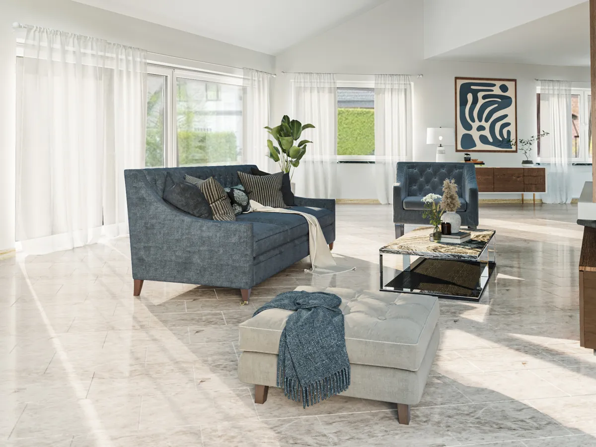 - Eleganter Travertin-Boden im EG