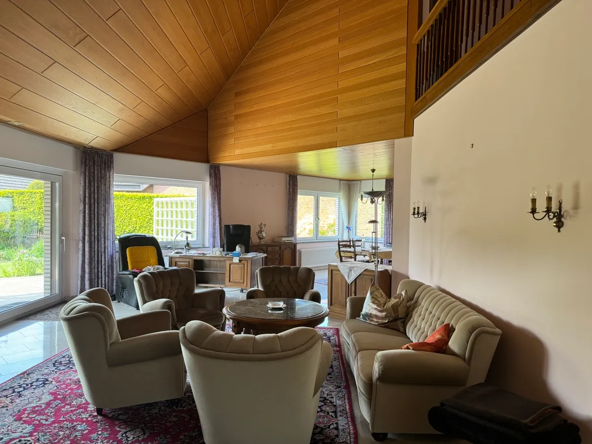 Dieses schöne Einfamilienhaus mit einer kleinen Einliegerwohnung (ca. 51m²) wurde im Jahr 1980 in massiver Bauweise und einer weißen Klinkerfassade errichtet. Das Leben in diesem repräsentativen Haus mit dem freien Blick in die Deckenhöhe von ca. 5,50 m im offenen Wohn-Ess-Bereich und den vielen Möglichkeiten, die sich im Haus bieten, wird Sie begeistern.