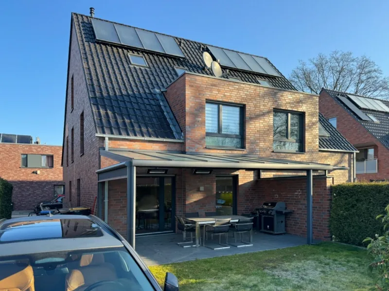 - hochwertige Terrassenüberdachung mit Beschattungsfunktion, Heizstrahler, Beleuchtungen sowie Sonos-Soundsystem-Halterung