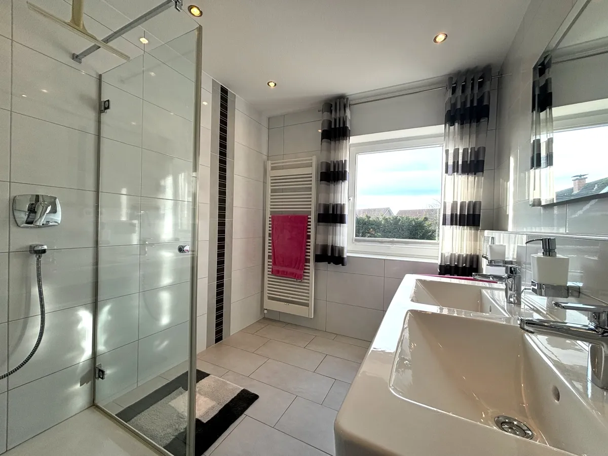 Ein besonderes Highlight ist der über 50 m² große Wohn- und Essbereich, der durch eine einladende große Diele betreten wird. Der Kamin sorgt für gemütliche Abende, während die Fußbodenheizung im Erdgeschoss wohlige Wärme spendet. Die moderne Gasheizung und eine Klimaanlage im Schlafzimmer runden den Komfort ab.
