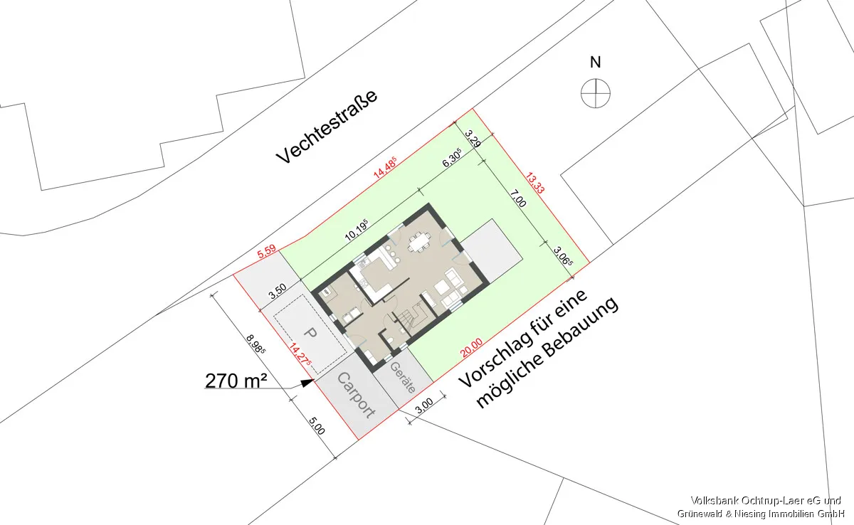 Entdecken Sie dieses charmante Grundstück in der idyllischen Lage von Ochtrup / Langenhorst – ein idealer Ort für Ihr zukünftiges Eigenheim. Mit einer Grundstücksgröße von ca. 270 m² bietet es ausreichend Platz für die Verwirklichung individueller Wohnträume in einem allgemeinen Wohngebiet. Die eingeschossige, offene Bauweise ermöglicht zusätzlich die kreative Nutzung eines Dachgeschosses (als Nicht-Vollgeschoss). Die Dachneigung darf zwischen 30 und 45 Grad betragen, um sich harmonisch in das Ortsbild zu passen.