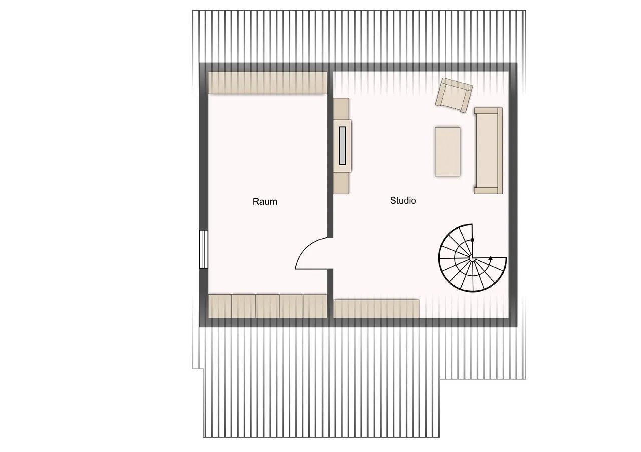 In den ausgebauten Spitzboden (ca. 45,5 m²) gelangt man über die Wendeltreppe. Hier erwartet Sie eine große lichtdurchflutete Galerie, ein Abstellraum und das Schlafzimmer. In der Galerie kann auch noch ein dritter Raum (Kinder- oder Arbeitszimmer) mittels einer Leichtbauwand erstellt werden. 2021 wurden im Spitzboden zwei Dachfenster erneuert und die Wände neu tapeziert und gestrichen.