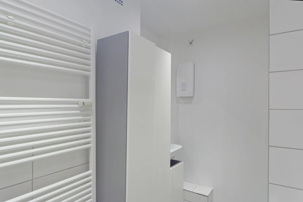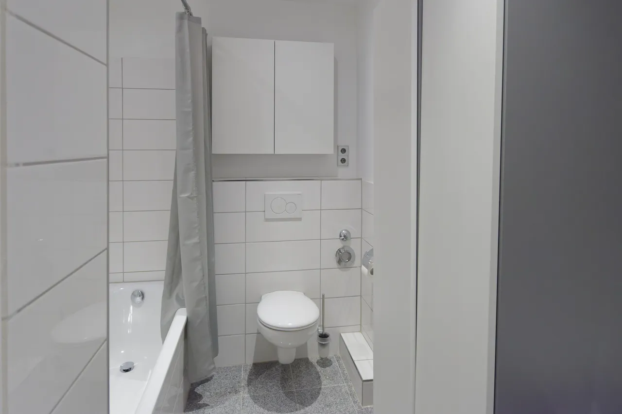 Bad:funktionale Badgestaltung mit Badewanne und Handtuchheizkörper, erneuerter Durchlauferhitzer
