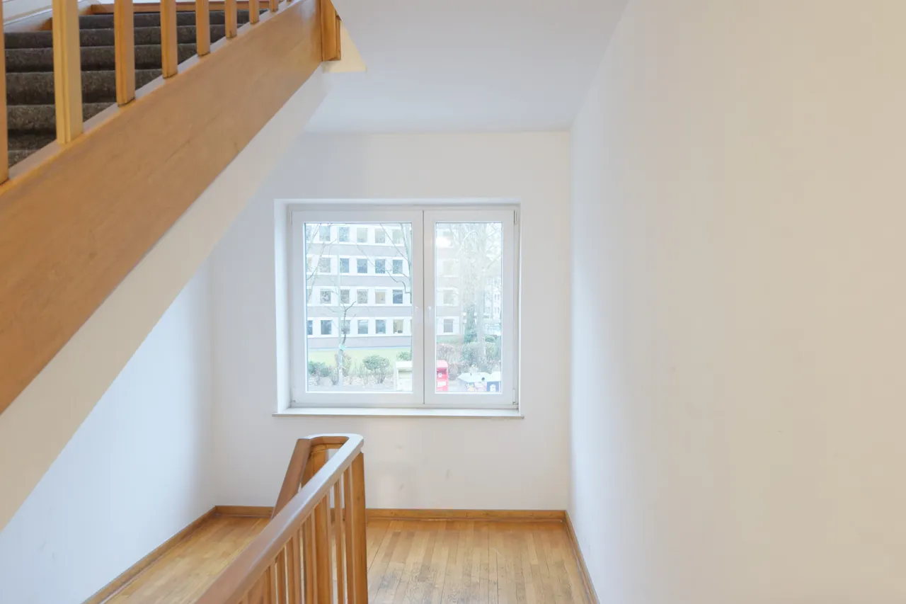 Diese hochwertige Mietwohnung befindet sich in einem gepflegten Mehrfamilienhaus in der Friedrich-Ebert-Straße in Münster. Die komplette Sanierung wurde abschlossen durchgeführt und bietet eine zeitlose, hochwertige Innenausstattung. Die Wohnung besticht durch moderne Details wie eine Fußbodenheizung und Echtholz-Parkett im Fischgrätmuster. Alle relevanten Leitungen (Abwasser, Strom) wurden vollständig erneuert. Die Wohnung verfügt über ca. 103 m² Wohnfläche und einen separaten Eingangsbereich in der 1. Etage.