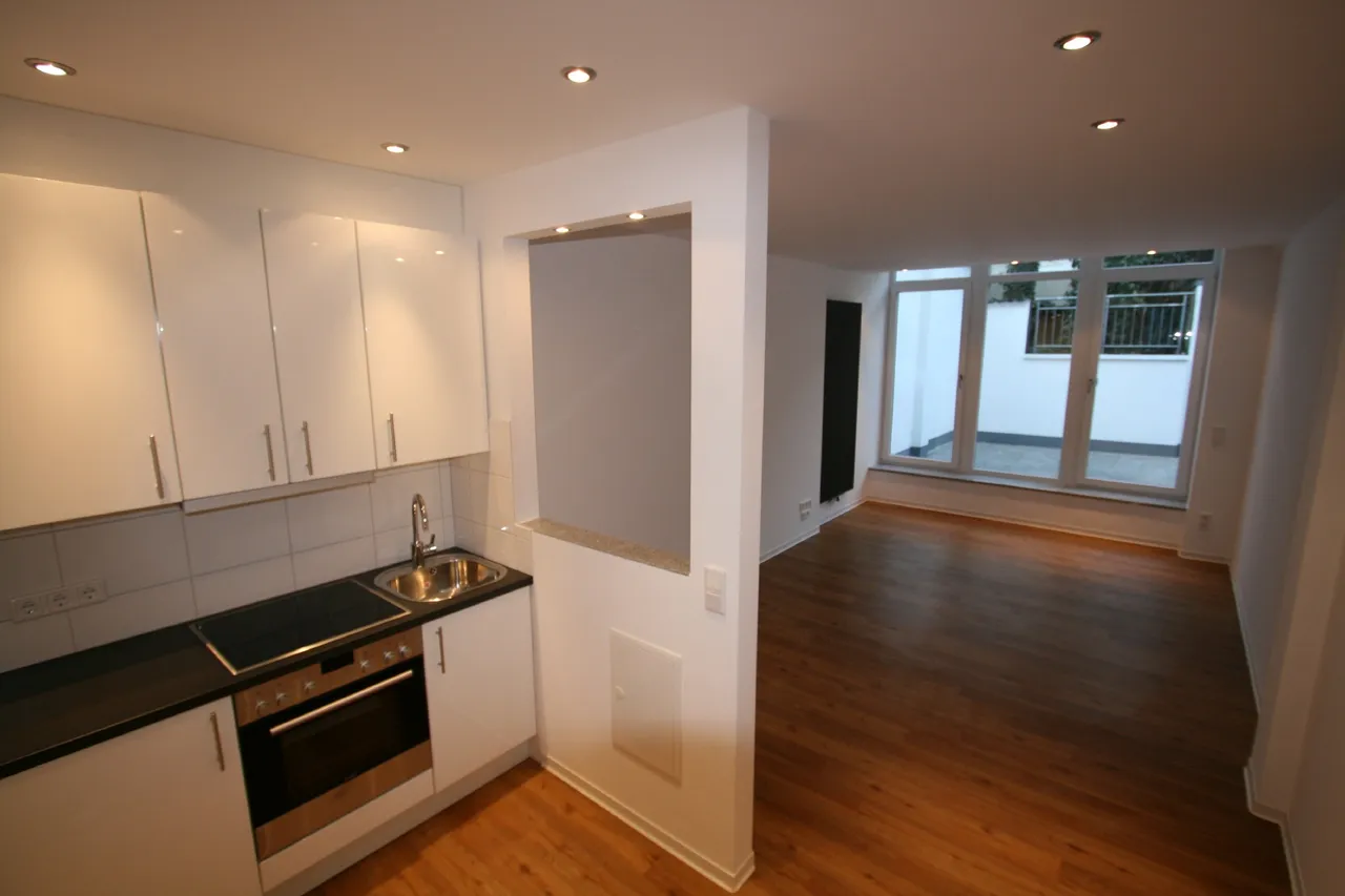 Der helle Wohn- und Schlafbereich ist mit einer Küche ausgestattet und lässt sich flexibel möblieren. Ein besonderes Highlight ist die großzügige Terrasse, die zusätzlichen Wohnkomfort bietet und zum Verweilen im Freien einlädt.
