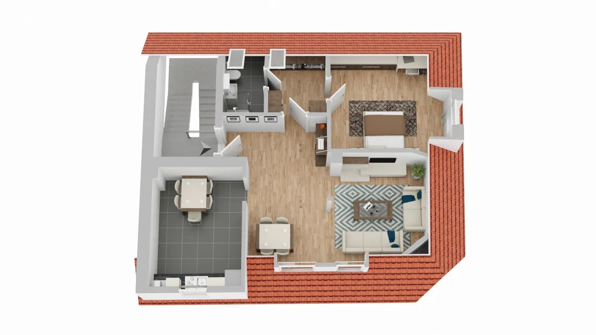 DG: 59,5m² mit 2 Zimmern, Küche, Bad
