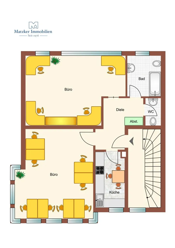 Wer sich eine zentrale Lage in gutem Umfeld einer gepflegten Immobilie für seine Tätigkeit wünscht findet hier ein gutes Angebot.