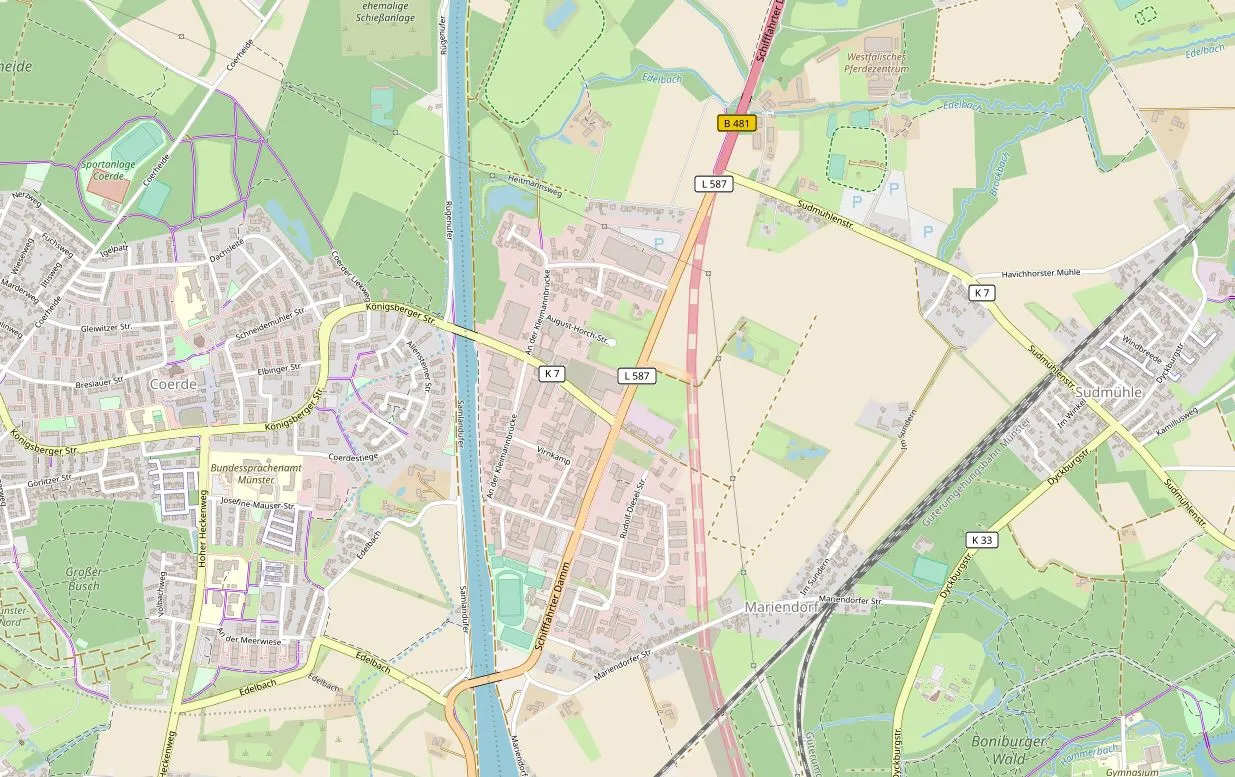 Der Standort ist verkehrstechnisch gut nach Münster-Mauritz, Handorf, Coerde, der A1 und Greven angebunden.