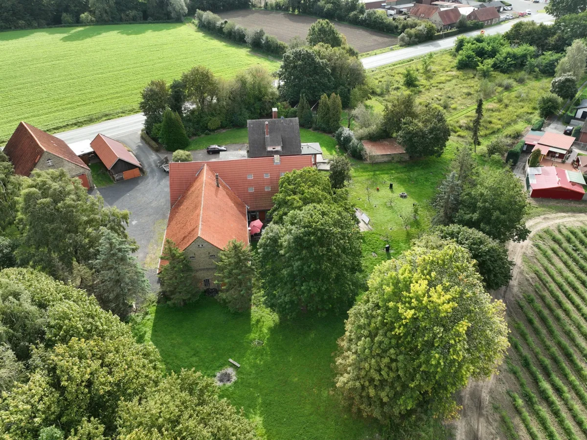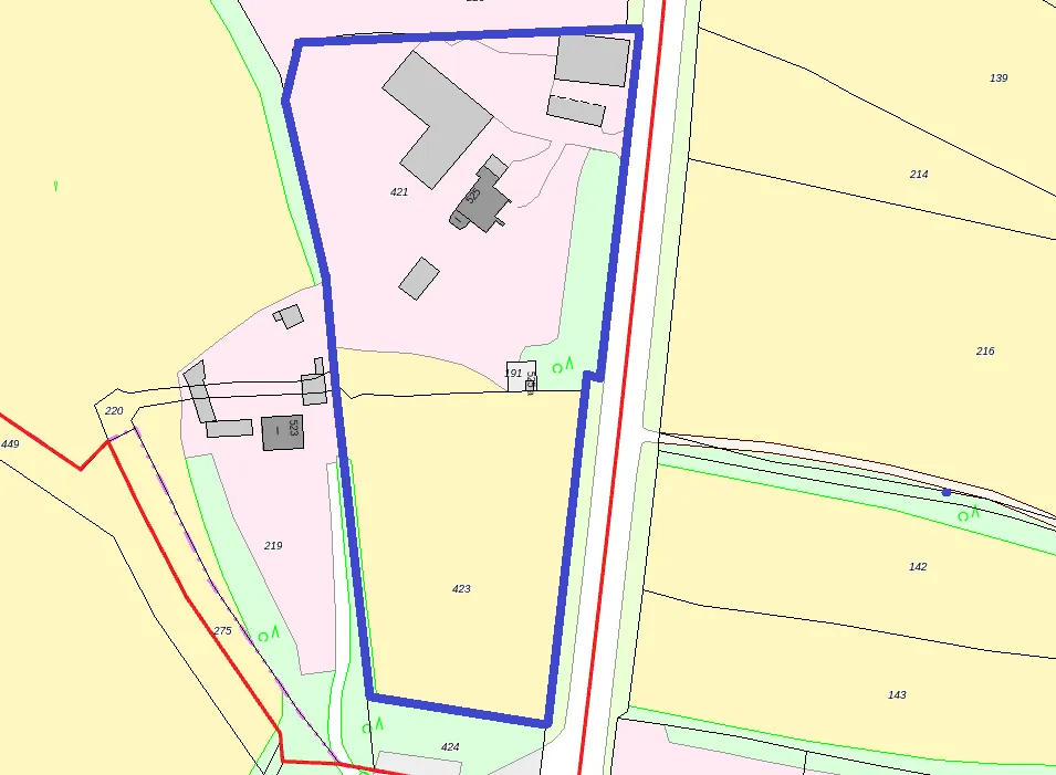 Das Anwesen erstreckt sich über eine großzügige Fläche von etwa 18.955 Quadratmetern, die vielfältige Möglichkeiten zur Entfaltung bietet. Neben einer imposanten Scheune und einem geräumigen Stall steht Ihnen ein weiteres Wohngebäude zur Verfügung, das großzügigen Wohnraum bietet. Das Anwesen ist von üppiger Natur umgeben, einschließlich zahlreicher Grünflächen, die zum Anwesen gehören.