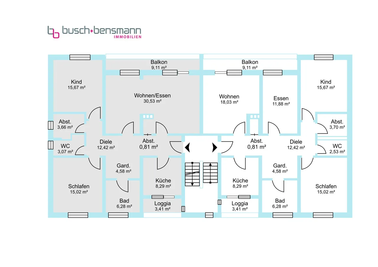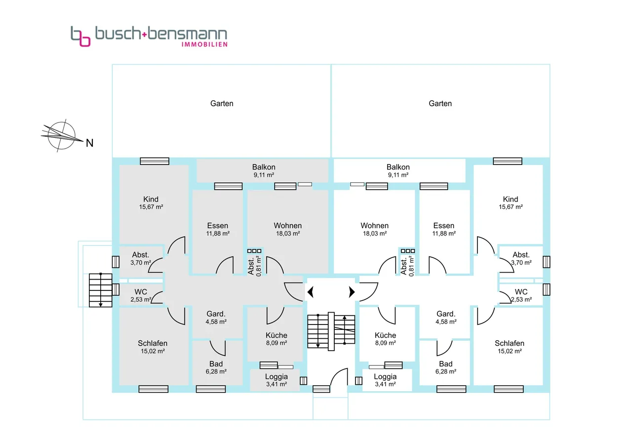 - Balkone: Jede Wohnung verfügt über zwei Balkone