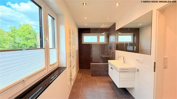 Außergewöhnlich bei Stadthäusern ist bereits die Hausbreite von fast 6 Metern, welche eine gelungene Basis für das großzügige Raumkonzept mit entsprechend guter Belichtung darstellt. Überhaupt bietet das Haus eine selten erreichte Lebensqualität: neben der transparenten Grundrisslösung im Wohn-/Essbereich mit breiten Fensterfronten besticht jeder Raum mit eindrucksvoller Großzügigkeit. Gleich zwei Designerbäder, beide mit Tageslicht überzeugen hier ebenso wie das elegante Interieur des Hauses.