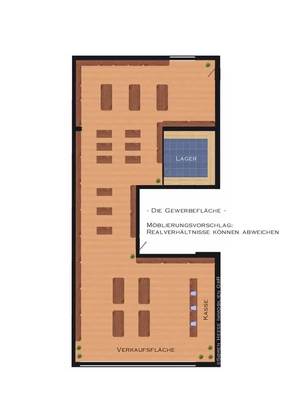 Besonders attraktiv ist darüber hinaus die variable Grundrisslösung, die leicht auf Ihre ganz unternehmensspezifischen Anforderungen angepasst werden kann: erwarten Sie eine flexible Ladenfläche mit viel Licht - eine einzigartige Gewerbefläche in auffälliger Stadtlage mit hohem Imagevorteil!