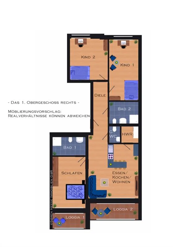 Computeranimationen werden nicht vom Bauträger als späterem Vertragspartner, sondern stets von unbeteiligten EDV-Dienstleistern erstellt: sie sind keinesfalls geeignet, eine Entscheidungshilfe darzustellen, da sie unverbindlich sind und dem entsprechend keine Rechtsgrundlage abbilden. Bitte prüfen und verlassen Sie sich daher unbedingt und ausschließlich auf bauträgerseits erstellte Unterlagen wie Baubeschreibung, Ansichten, Schnitte, Grundrisse, etc.