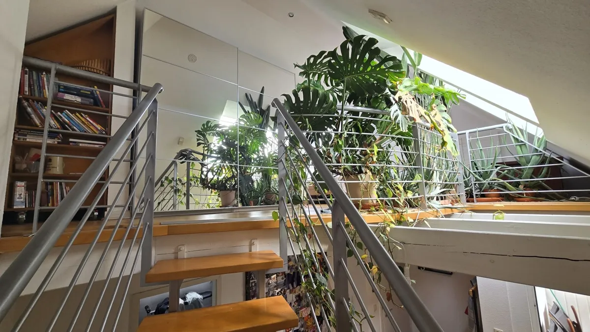 Diese Wohnung befindet sich im 3. Obergeschoss eines gepflegten Mehrfamilienhauses. Das Gebäude wurde 1992 um diese besondere Wohnebene erweitert und schafft mit seiner durchdachten Architektur ein offenes, helles Wohnkonzept.