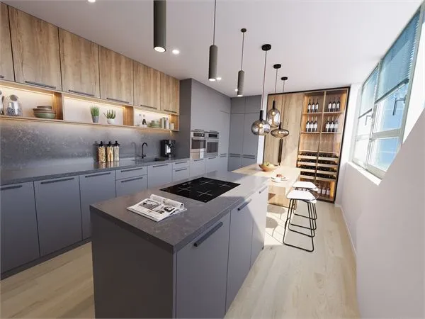 Der Angebotspreis i. H. v. 1,4 Mio. beinhaltet empfohlene, jedoch nicht zwangsläufige Individualisierungen (Ästhetische Anpassung der Böden, Türen, Bad und Gäste-WC). Für diese haben wir ein courtagefreies Konzept erstellt, welches wir vom Angebotspreis abgezogen haben, so dass sich der Kaufpreis i. H. v. 1,3 Mio. auf das Penthouse im Ist-Zustand bezieht.