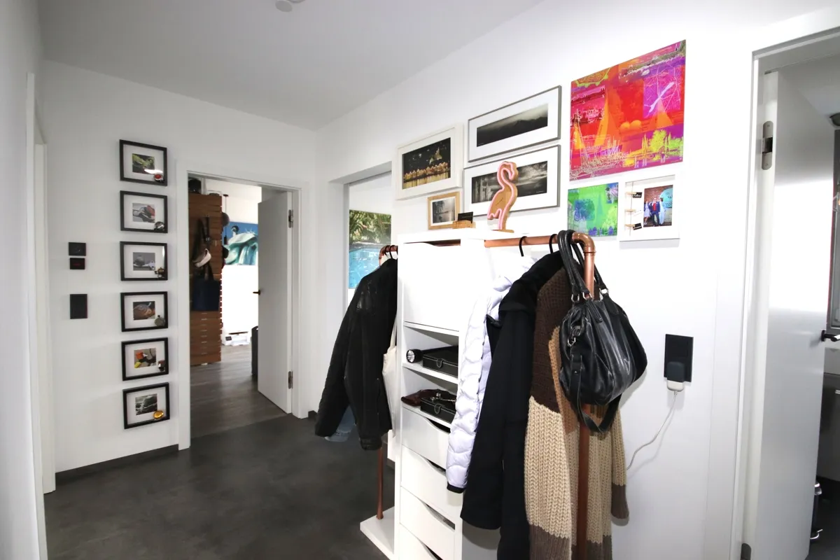 Die Wohnung startet mit Flur und moderner Garderobe. Hier kann man in Ruhe ankommen und Ablegen. Der Hausflur verbindet zentral alle relevanten Wohnräume.