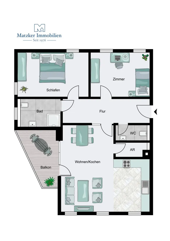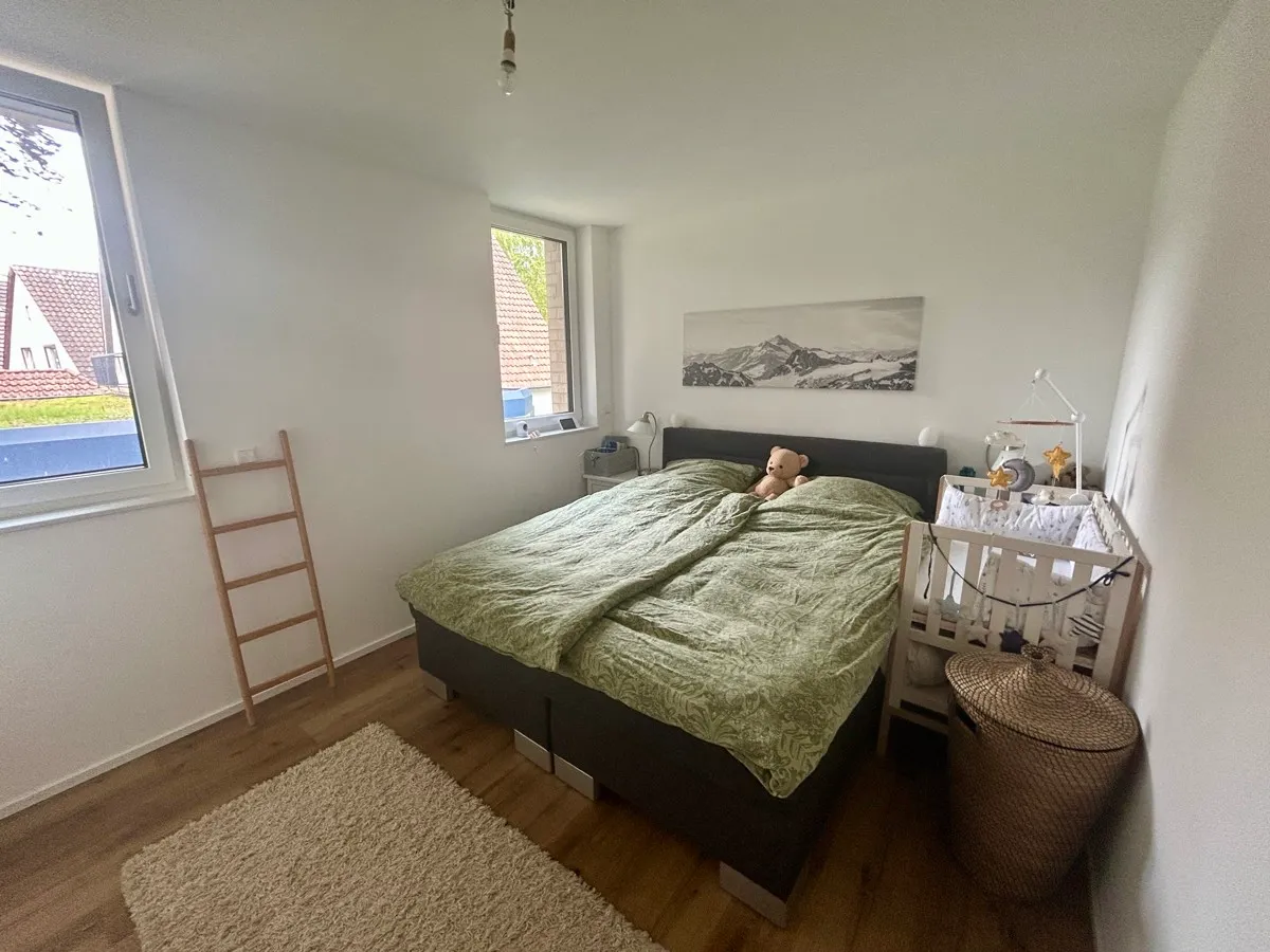 Die großzügige Wohnung im 1. Obergeschoss überzeugt durch ihren durchdachten Grundriss und den südwestlich ausgerichteten Balkon. Ideal, um die Abendsonne zu genießen. Auf ca. 91 m² Wohnfläche verteilen sich zwei helle Schlafzimmer, ein offener Wohn-/Essbereich mit integrierter Küche die bei Wunsch übernommen werden kann, ein Abstellraum, ein stilvolles Bad sowie ein separates Gäste-WC.