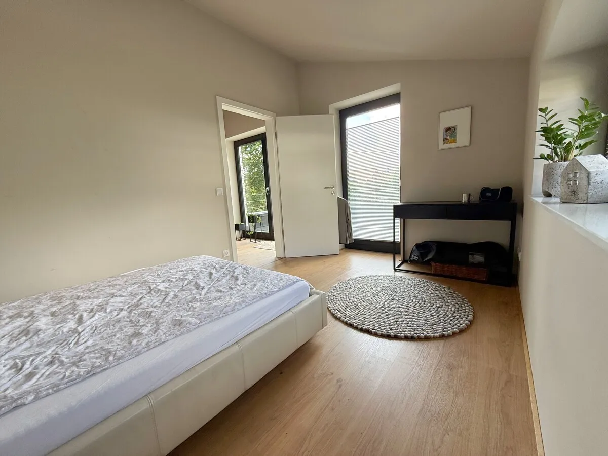Das Obergeschoss bietet auf ca. 78 m² ausreichend Platz für Ihre Familie. Insgesamt gibt es hier drei Zimmer, die flexibel als Schlafzimmer, Kinderzimmer oder Arbeitszimmer genutzt werden können. Das moderne Badezimmer überzeugt zudem mit einer bodengleichen Dusche und einem edlen Design, das Wohlfühlmomente garantiert. Auch im Obergeschoss sind die Materialien hochwertig gewählt. Besonders hervorzuheben ist die „offene Decke“, welche für komfortable Raumhöhe sorgt. Die Dachterrasse bietet die Möglichkeit für entspannte Stunden im Freien.