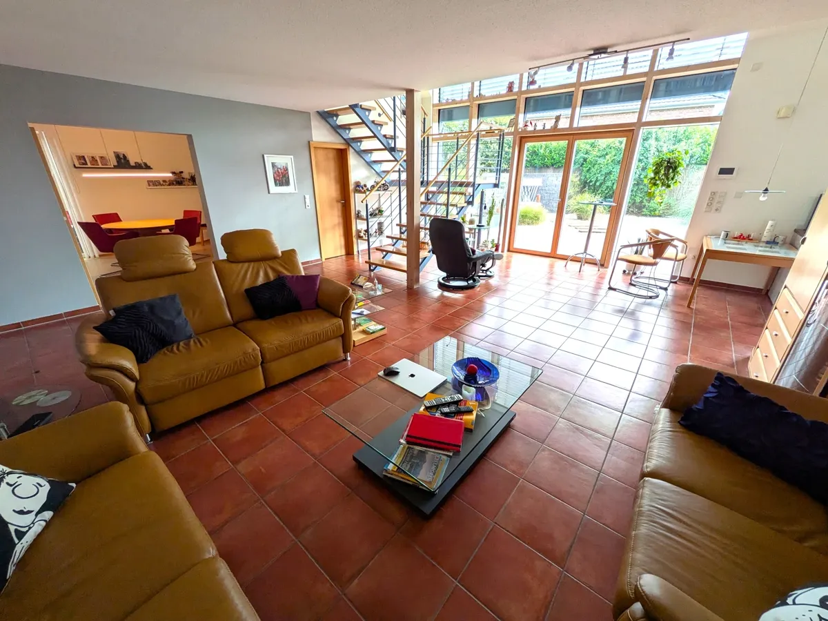 + Geräumiges Wohnzimmer mit Blick in den Garten