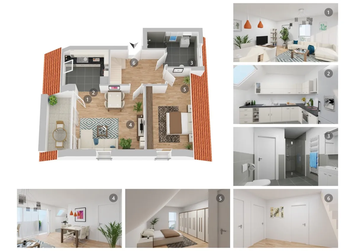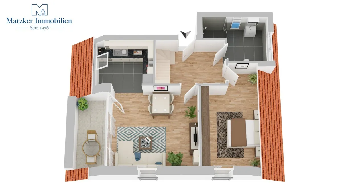+ Fußbodenheizung mit Thermostatregelung in allen Räumen