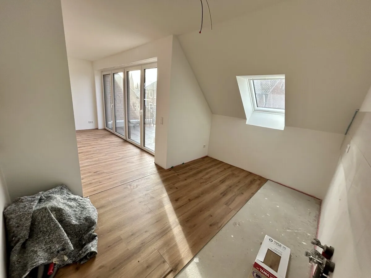 Eine ansprechende und komfortable Neubauwohnung in einem energieeffizienten Mehrfamilienhaus. Diese schöne Penthousewohnung verfügt über ca. 84 m²-Wohnfläche, aufgeteilt in eine Diele, ein Bad, ein Schlafzimmer, ein großzügiges Studio, ein geräumiges Wohn-/Esszimmer mit offener Küche und dem Zugang zum Balkon mit West-Ausrichtung. Zur Wohnung gehört ebenfalls ein Pkw-Stellplatz, welcher jeweils bereits mit Leerrohren für eine mögliche E-Ladesäule ausgestattet ist. Für Ihre Fahrräder steht ein überdachter Geräte-/ Fahrradraum zur Verfügung.