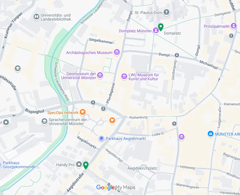 Auch die Universität Münster mit ihren vielfältigen Einrichtungen sowie sämtliche Bildungs- und Forschungsstandorte sind schnell und bequem erreichbar. Die Fußgängerzone mit ihren exklusiven Einkaufsmöglichkeiten, der historische Prinzipalmarkt, der Domplatz mit dem beliebten Wochenmarkt und der Hauptbahnhof liegen in fußläufiger Entfernung. Restaurants, Cafés und zahlreiche kulturelle Angebote in der Nachbarschaft tragen zusätzlich zur Attraktivität dieser Lage bei.