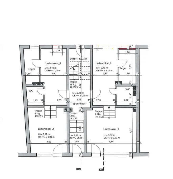 Das Erdgeschoss umfasst zudem eine attraktive Gewerbefläche von insgesamt 111 m², aufgeteilt in zwei Einheiten mit 51 m² und 60 m². Diese Flächen bieten vielseitige Nutzungsmöglichkeiten und profitieren von ihrer exponierten Lage.