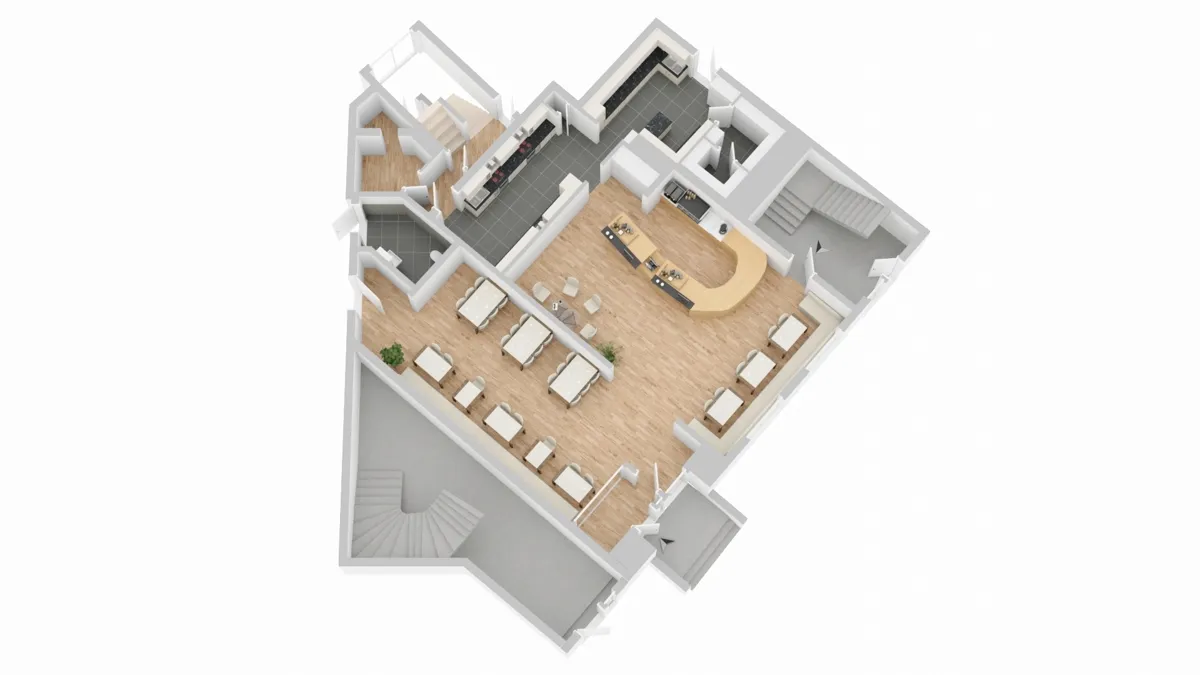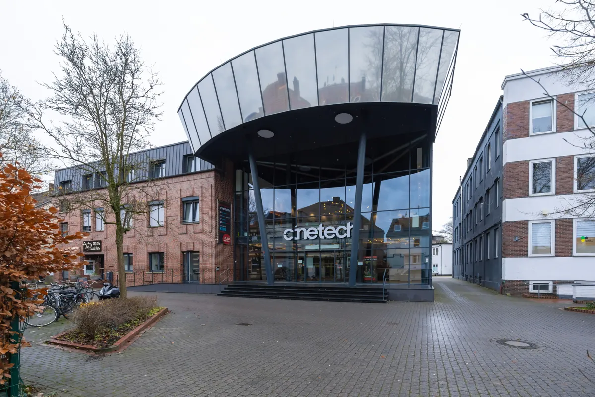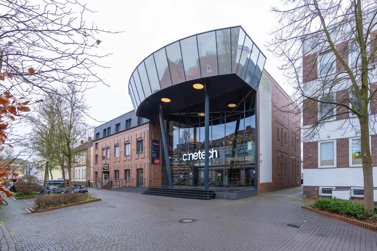 Das hier im Angebot zusätzlich enthaltene Cinetech-Kino mit Restaurant und vier Wohneinheiten liegt auf der gegenüberliegenden Straßenseite, Richtung Innenstadt, eingebettet in einen charmanten und lebendigen Teil von Gronau.