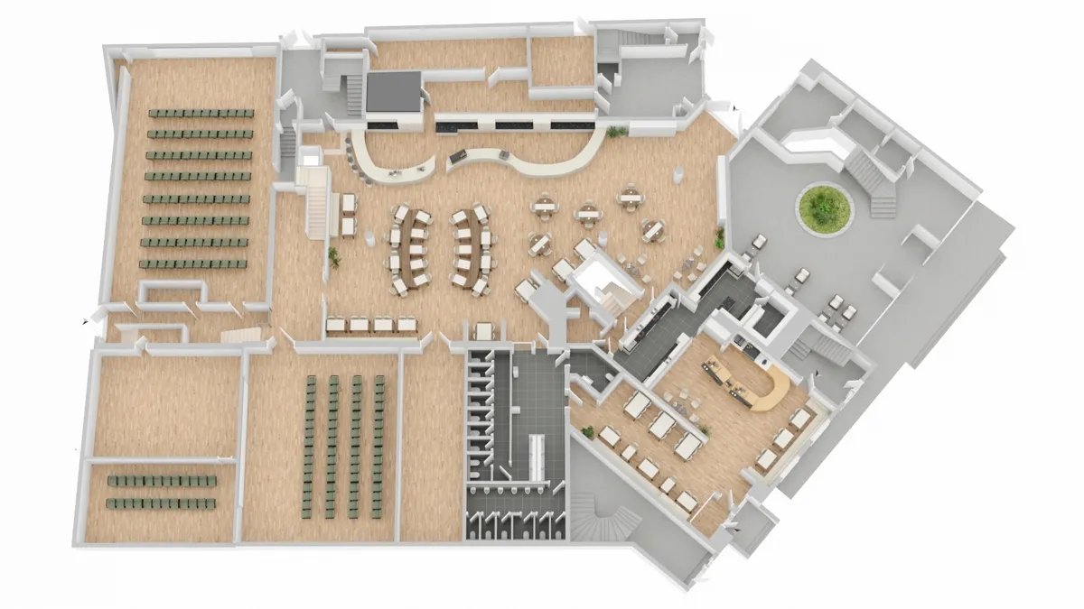 Cinetech-Kino: Ca. 3.755m² Nutzfläche, 5 Premium-Kinosäle mit 450 Sitzplätzen, Lichtdurchflutetes Atrium mit Veranstaltungsraum für bis zu 2.000 Personen, Sportsbar, Bistro u. Kinokasse, Verwaltung, Sanitäranlagen