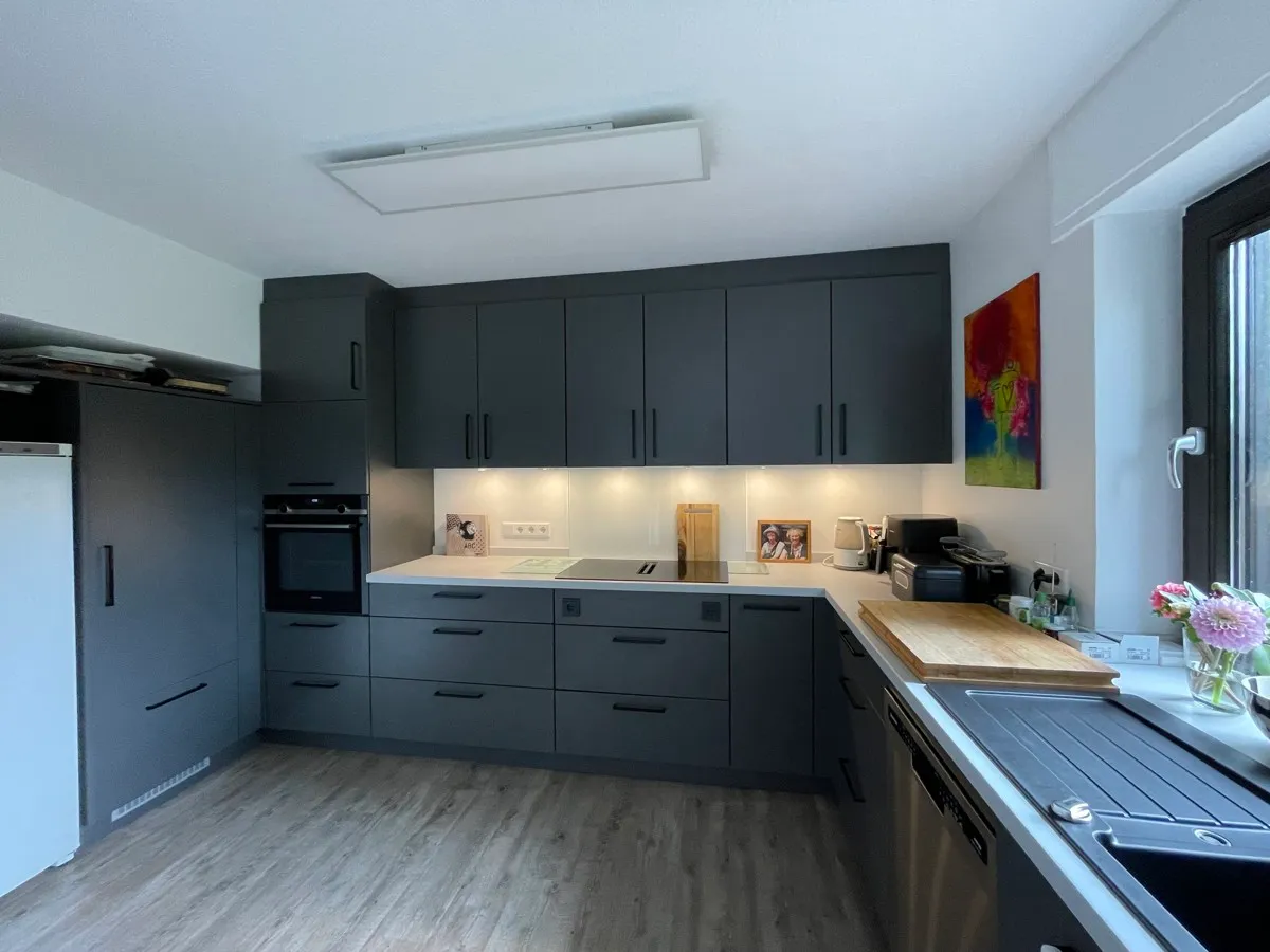 Die Küche mit Induktionsherd und Abluft nach Außen, aus 2023, kann nach Vereinbarung übernommen werden.