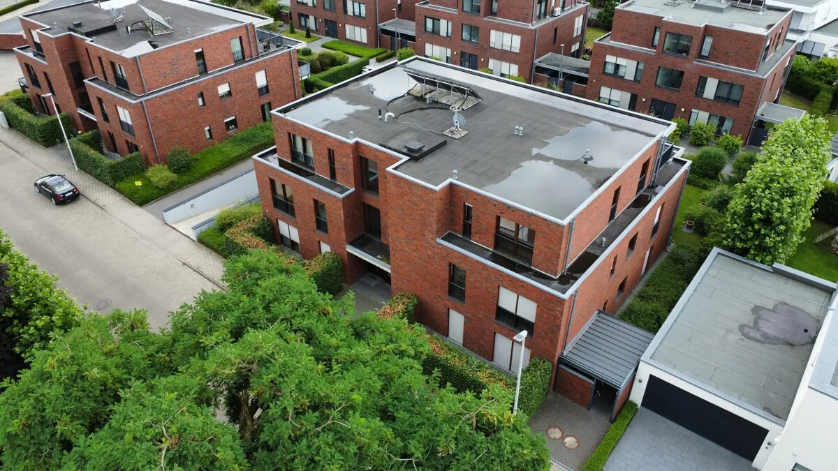 Das Penthouse ist aufgeteilt in Wohn-/Esszimmer mit offener Küche, Schlafzimmer, Bad mit Dusche, Abstellraum, sowie ein Gäste-WC. Genug Stauraum bietet Ihr zusätzlicher eigener Kellerraum. Im Keller befindet sich ein Waschraum, hier besteht die Möglichkeit Waschmaschine und Trockner unterzubringen. Das Auto stellen Sie auf dem eigenen Tiefgaragenstellplatz (60,00 €) ab, zudem ist die Anmietung eines Außenstellplatzes (25,00 €) möglich. für Fahrräder steht ein ausreichender Fahrradunterstand zur Verfügung.