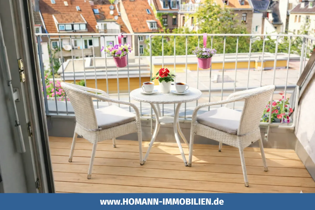 Zwei einladende Balkone erweitern den Wohnraum und bieten angenehme Rückzugsmöglichkeiten im Freien – ein seltenes Merkmal in dieser begehrten Innenstadtlage.