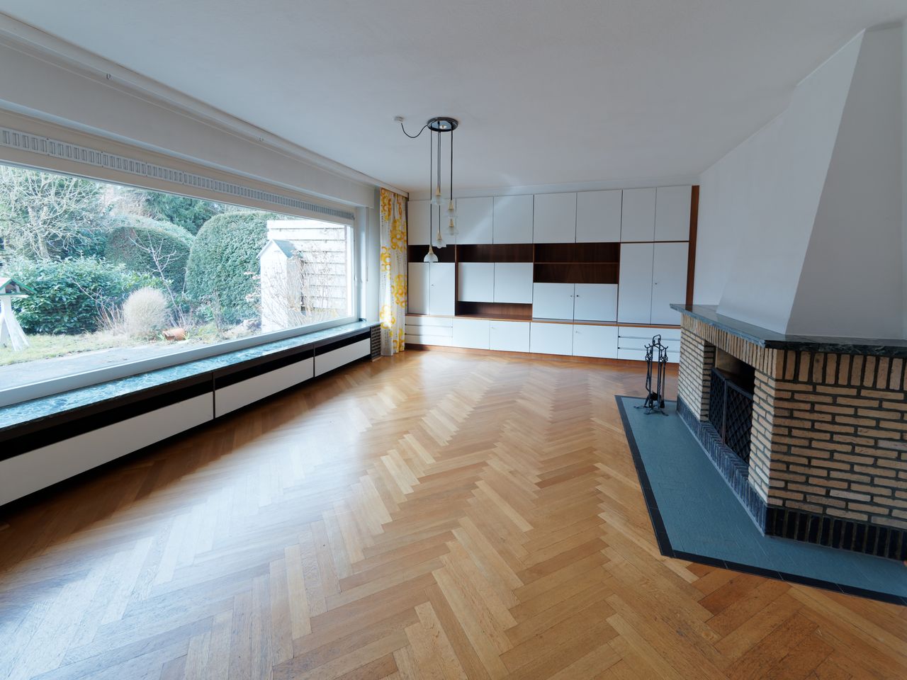 Sowohl Wohn- und Esszimmer als auch Schlafzimmer im EG haben einen wunderschönen Parkettboden in Fischgrat-Muster.