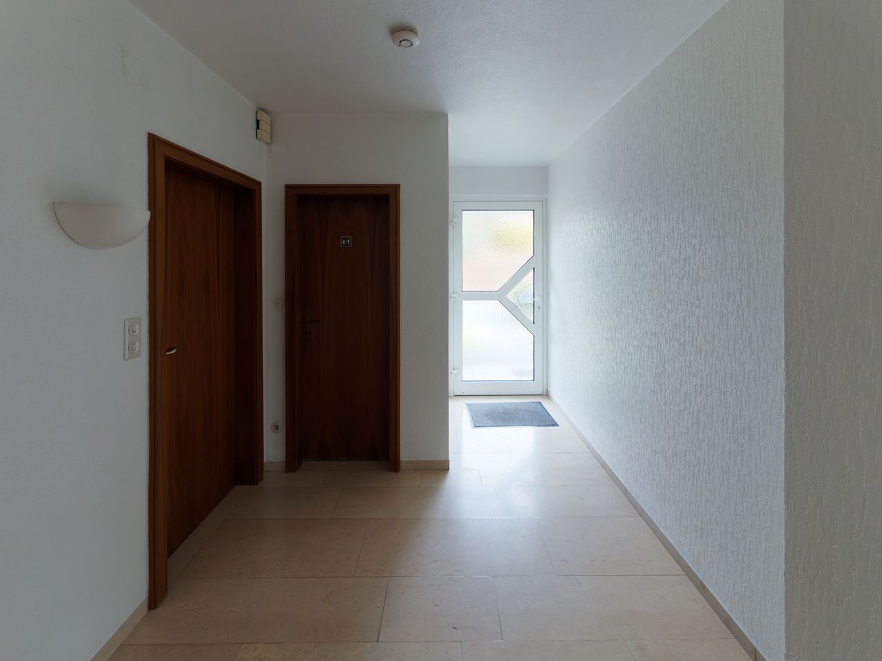 Der zentrale, freundliche Eingangsbereich mit Solnhofener Naturstein bietet Platz für eine Garderobe und zusätzlichen Stauraum. Direkt rechts befindet sich ein gut geschnittenes Zimmer, das sich hervorragend als Gäste-, Arbeits- oder Schlafzimmer eignet. Ein angrenzendes Duschbad mit WC ergänzt diesen Bereich ideal – perfekt für Gäste oder zur täglichen Nutzung.