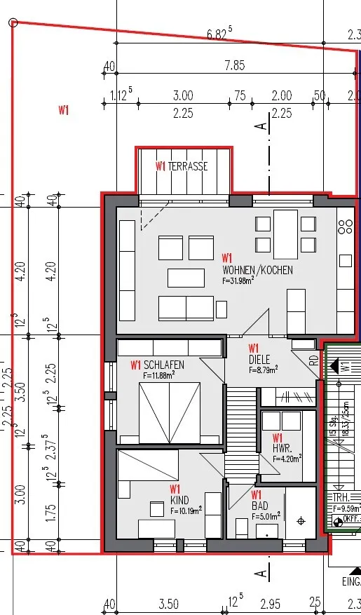 Ein wirtschaftlicher und offen gestalteter Grundriss mit Wohnzimmer, offene Küche mit Essplatz, sonniger Terrasse zum Süd-Westen, Flur, Bad mit Dusche und WC, 2 Schlafzimmer und ein Hauswirtschaftsraum. Ein eigener Kellerraum und Kfz- Stellplatz gehören zur Wohnung.