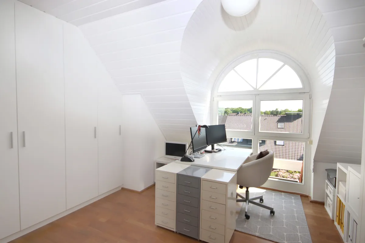 Die übrigen Räume im oberen Wohnbereich sind mit hochwertigem Eichenparkett ausgestattet.