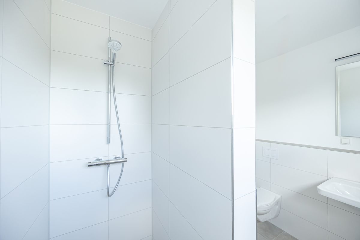 Im Obergeschoss erwarten Sie zwei gut geschnittene Schlafzimmer sowie ein modernes Tageslichtbad mit bodentiefer Dusche, Waschbecken und WC. Für zusätzlichen Komfort steht ein separater Hauswirtschaftsraum mit Anschlussmöglichkeiten für Waschmaschine und Trockner zur Verfügung.