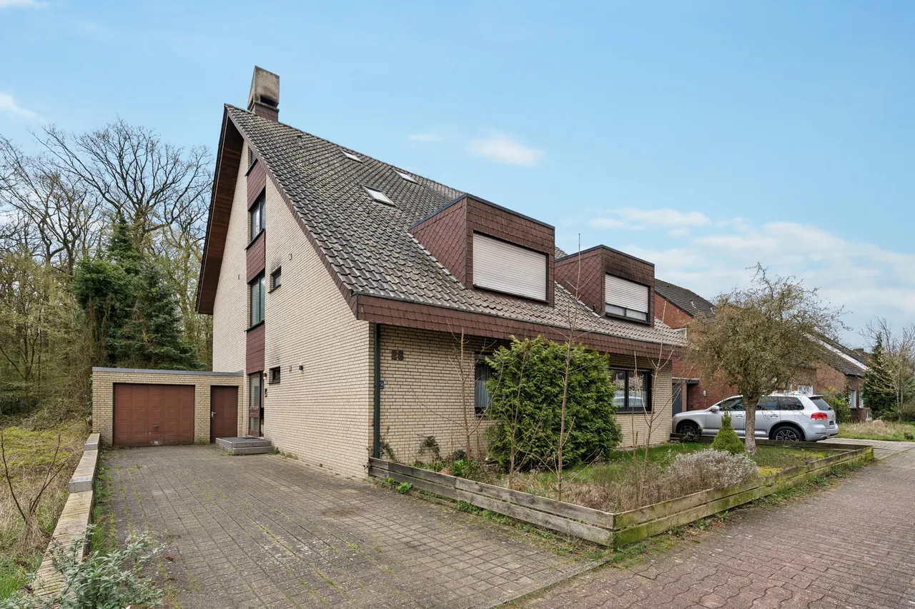 Die offizielle Wohnfläche beträgt 235,57 m², ergänzt durch zusätzliche Nutzfläche im ausgebauten Dachgeschoss. Der Vollkeller bietet mehrere Abstellräume sowie eine praktische Kelleraußentreppe. Beidseitig am Gebäude sind Garagen angebaut.